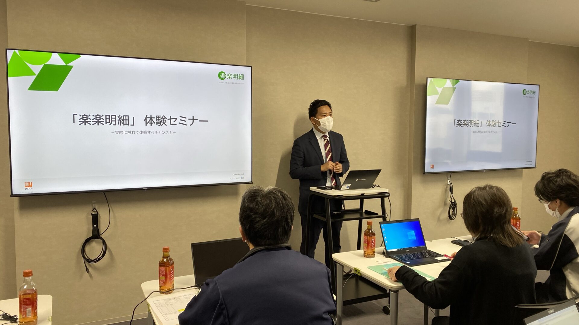 『どのように法対応すればよいのか?』『システムを利用すると業務がどう変化するのか?』などの疑問に対して、実際に「楽楽精算」「楽楽明細」に触れていただき、業務効率化について体験していただきたく開催にいたりました。
